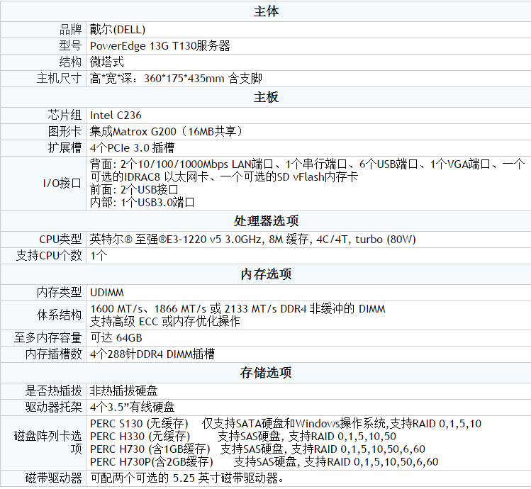戴爾T330 企業(yè)級(jí)塔式服務(wù)器